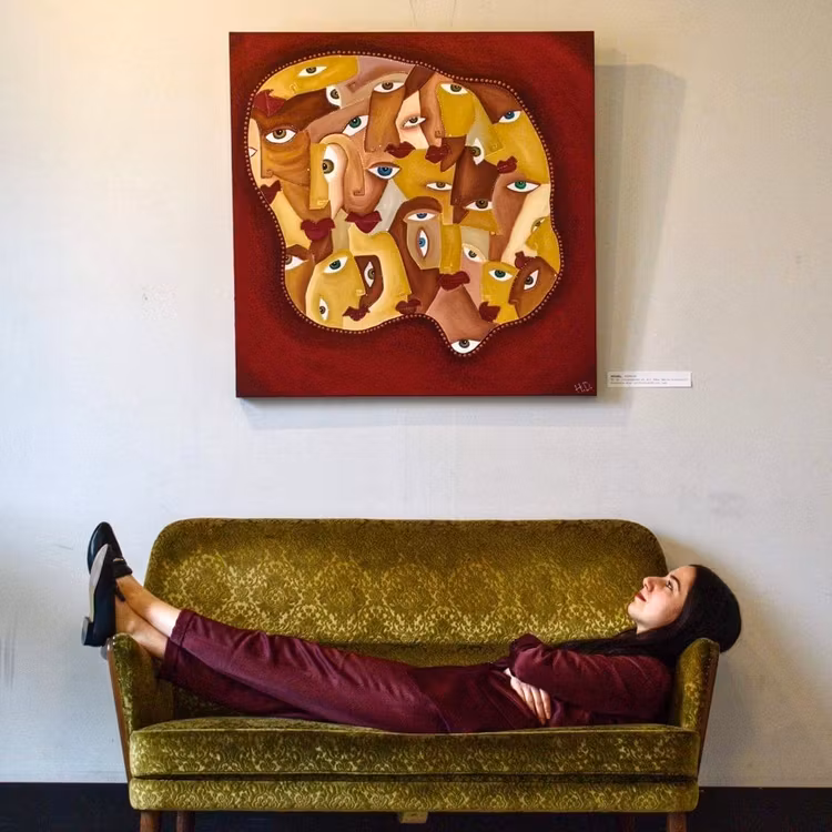 PUSSEL - FRÅN UTSTÄLLNINGEN ABSTRACT ABSTRACTION 2017 Konstnär: Heleni Damar Storlek: 90x90cm Material: Akryl på canvasduk