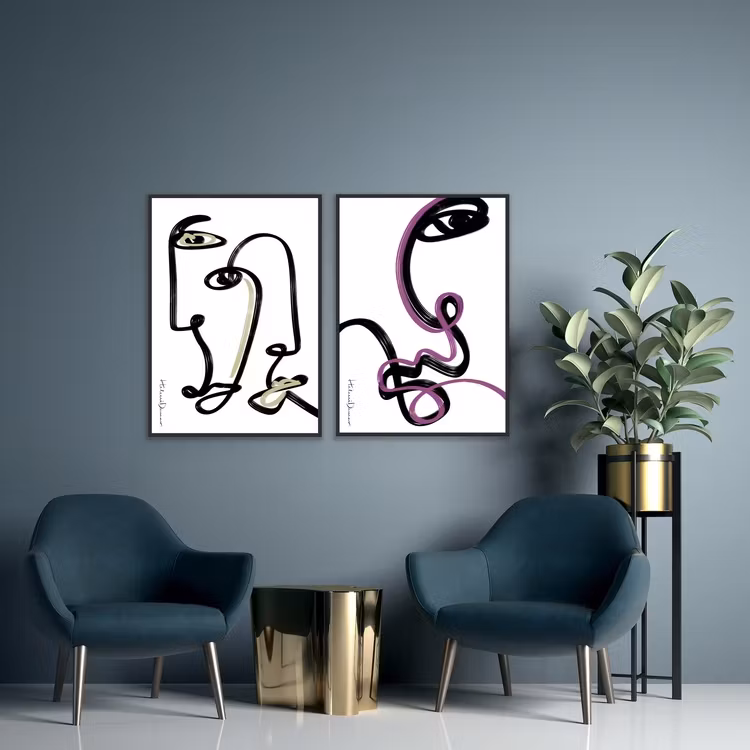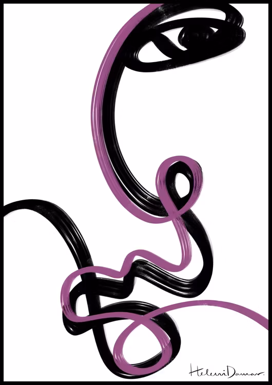 Abstrakt illustration som målats med en svart sammanhängande linje föreställandes ett ansikte på vit bakgrund. Smyckas med en härlig lila linje. Hitta dina nya favoriter bland ByHelenis abstrakta konstverk, ett urval av Helenis personliga favoriter med något som passar för alla. Kombinera postern med andra läckra konstverk ur kollektionen! Klicka här för att komma dit.