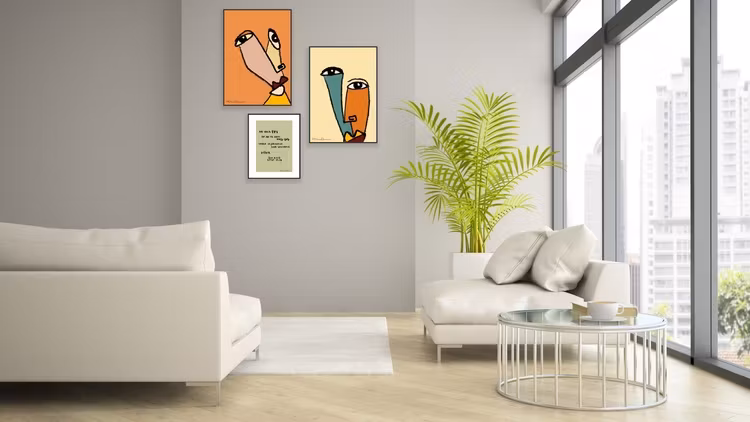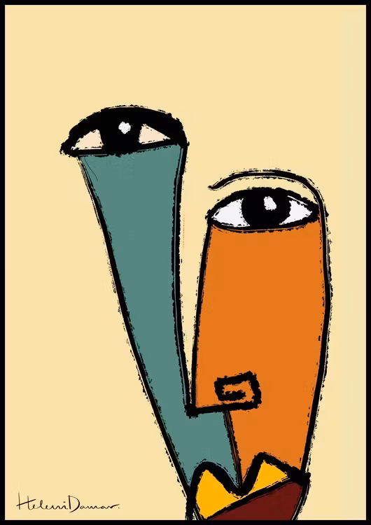 Abstrakt illustration med svarta linjer och former med färgglada starka färger på en ljus krämgul bakgrund. Hitta dina nya favoriter bland ByHelenis abstrakta konstverk, ett urval av Helenis personliga favoriter med något som passar för alla. Kombinera postern med ”Ruben” och/eller ”Are We One?” som en perfekt duo alternativt trio.