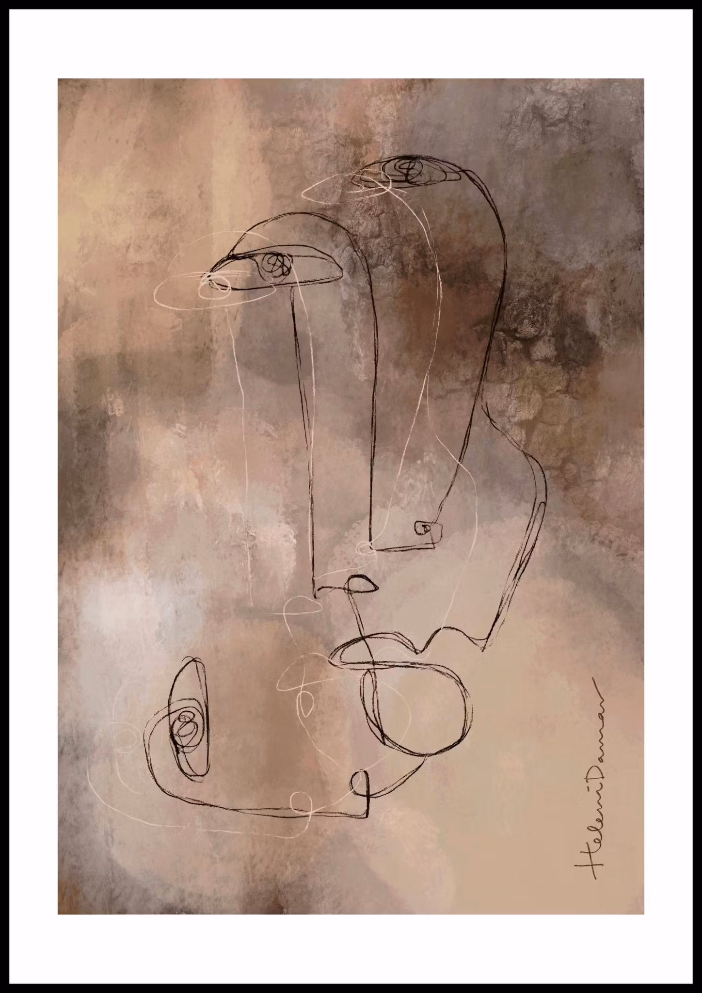 ABSTRAKT ILLUSTRATION AV KONSTNÄR HELENI DAMAR - ABSTRAKTA FORMER - MJUKA LINJER - ABSTRAKTA ANSIKTEN - VARMA HÖSTIGA NYANSER - BRUNBEIGA TONER - VIT KANT