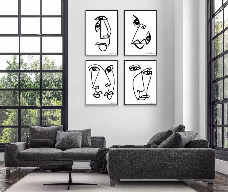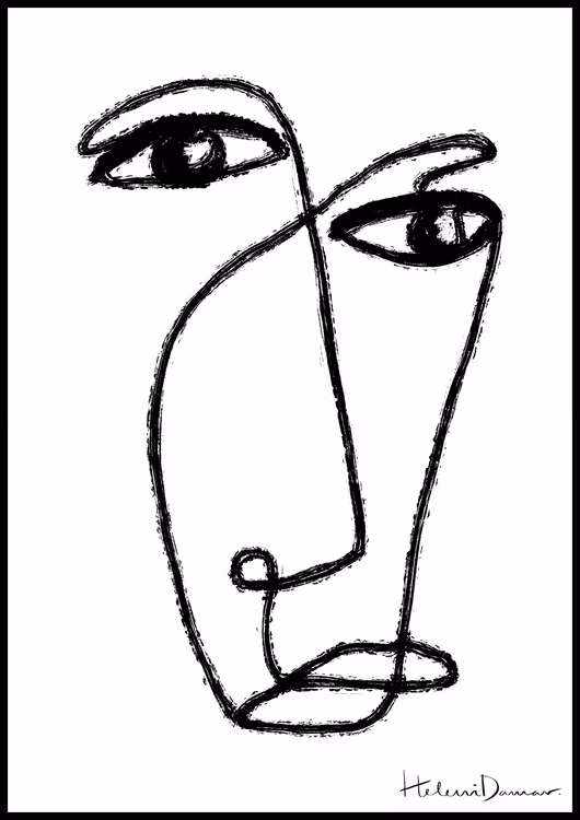 Abstrakt illustration med svarta stilrena linjer och former på vit bakgrund. Hitta dina nya favoriter bland ByHelenis abstrakta konstverk, ett urval av Helenis personliga favoriter med något som passar för alla. Kombinera postern med ”Sarah” och/eller ”Elliott” som en perfekt duo alternativt trio.