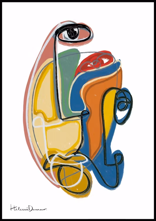 Abstrakt illustration målad med mjuka linjer föreställandes flera färgglada ansikten på vit bakgrund. Hitta dina nya favoriter bland ByHelenis abstrakta konstverk, ett urval av Helenis personliga favoriter med något som passar för alla. Kombinera postern med andra läckra konstverk ur kollektionen! Klicka här för att komma dit.