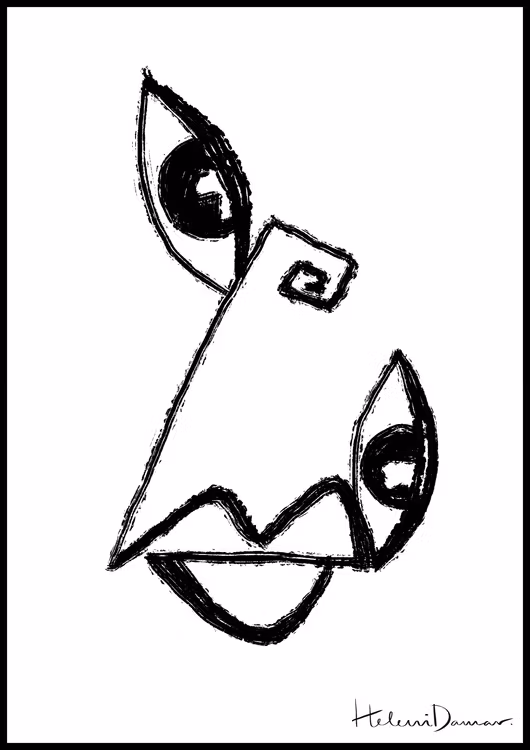 Abstrakt illustration med svarta stilrena linjer och former på vit bakgrund. Hitta dina nya favoriter bland ByHelenis abstrakta konstverk, ett urval av Helenis personliga favoriter med något som passar för alla. Kombinera postern med ”Elliott” och/eller ”Nate & Li” som en perfekt duo alternativt trio.
