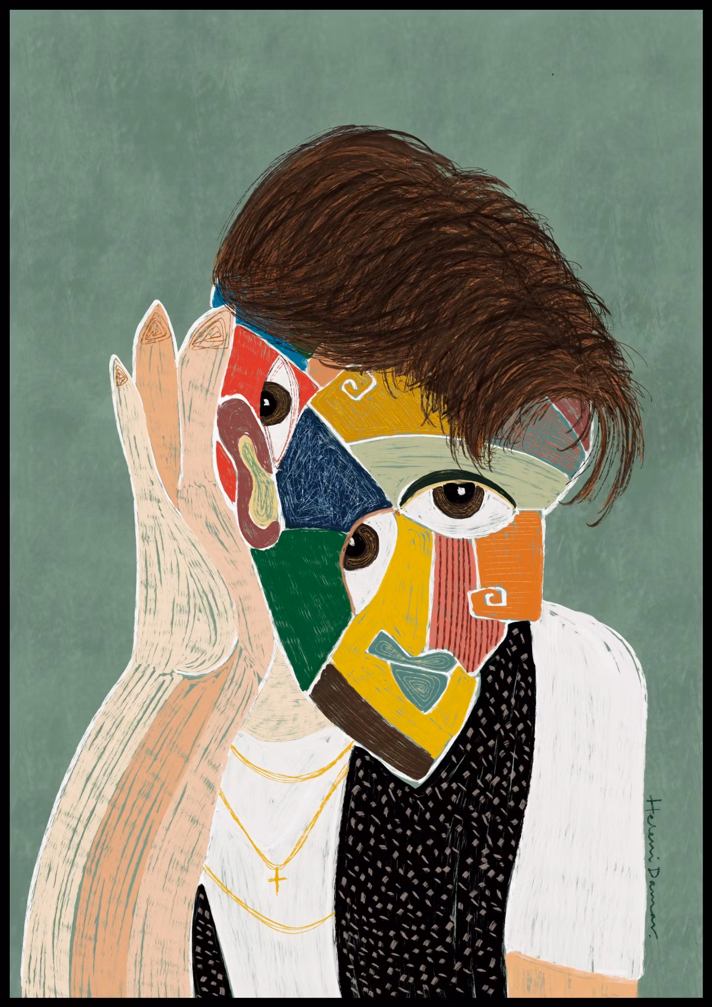 ABSTRAKT ILLUSTRATION AV KONSTNÄR HELENI DAMAR - ABSTRAKT PORTRÄTT - ABSTRAKTA FORMER - MJUKA LINJER - ABSTRAKTA ANSIKTEN - FÄRGGLADA NYANSER