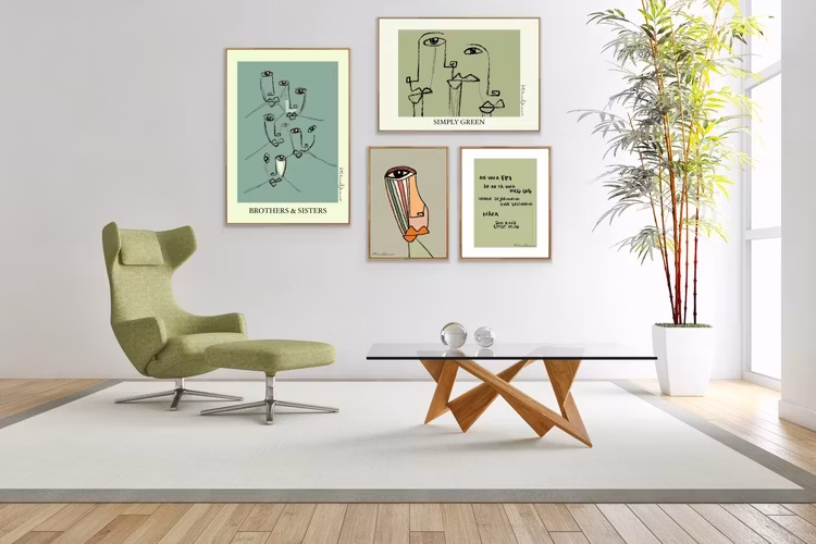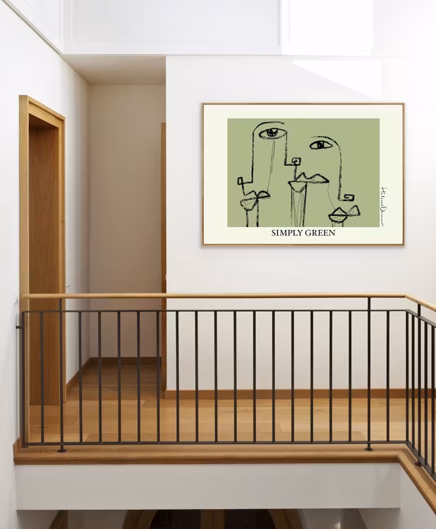 Abstrakt illustration med svarta linjer och former på en lindblomgsgrön bakgrund som inramas med ljusgrön ram. Hitta dina nya favoriter bland ByHelenis abstrakta konstverk, ett urval av Helenis personliga favoriter med något som passar för alla. Kombinera postern med ”The Clown” och/eller ”Brothers & Sisters” som en perfekt duo alternativt trio.