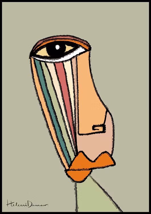 Abstrakt illustration med svarta linjer och former med färgglada starka färger på en lindblomsgrön bakgrund. Hitta dina nya favoriter bland ByHelenis abstrakta konstverk, ett urval av Helenis personliga favoriter med något som passar för alla. Kombinera postern med ”Brothers & Sisters” och/eller ”Fri” som en perfekt duo alternativt trio.
